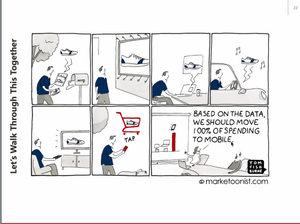 Grote vraag is of je gebaseerd op deze informatie je marketinginvesteringen kunt verantwoorden? Het antwoord is nee. In de wereld van vandaag, waarin klanten op verschillende manieren, off- en online worden beïnvloed, kan het niet zo zijn dat de laatste click diegene is die 100% van de credits moet krijgen. Je ziet het aan de cartoon dat meerdere factoren belangrijk kunnen zijn. Je adwordscampagne die het bezoek heeft gebracht vier weken geleden, kan als ‘direct verkeer’ worden gezien via de mobiele website om daar te converteren in een lead. Betekent dit dan dat de dealer zijn merkbekendheid zo groot heeft, dat hij net als Coca Cola, niet meer hoeft te adverteren? Het antwoord is natuurlijk nee, want zonder dat eerste bezoek komt het directe verkeer nooit.