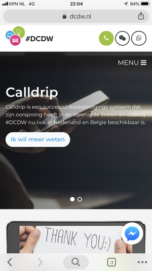 In dit voorbeeld, zie je op de mobiele website zowel een whatsapp functie als een Messenger functie!