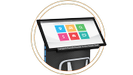 Let op, de content op die schermen is GEEN kopie van de website, maar is specifiek gemaakt voor de showroom. De klant krijgt een touch screen-ervaring aangeboden waarmee hij, zonder verkoper, alvast iets kan doen. Zo is de informatie via het scherm in de showroom uitgebreider dan de informatie die via de website wordt verstrekt. En met een klik op de button kan ook een verkoper worden geroepen.